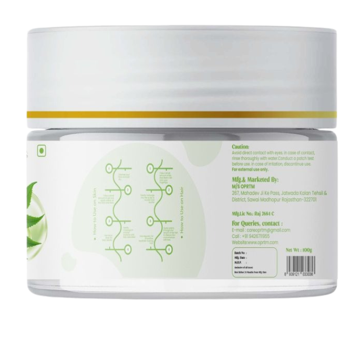 OPRTM My Aloe Multi‑Purpose Neem Gel blends the hydrating and cooling properties of natural aloe vera with the antibacterial potency of neem extract. This lightweight gel nourishes and calms the skin, soothes sunburns, reduces inflammation, and supports scalp health. Ideal for use on face, body, or hair, it absorbs quickly without greasy residue. Crafted by OPRTM—the trusted herbal manufacturer established in 2017 in Sawai Madhopur, Rajasthan—this gel is made from organically curated aloe juice and neem, ensuring a natural and chemical-free experience.